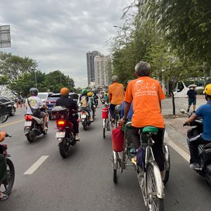 交通量の多い時間帯、バイクに囲まれながらのシクロ乗車、スリリングで楽しかった!