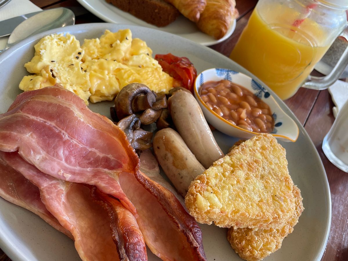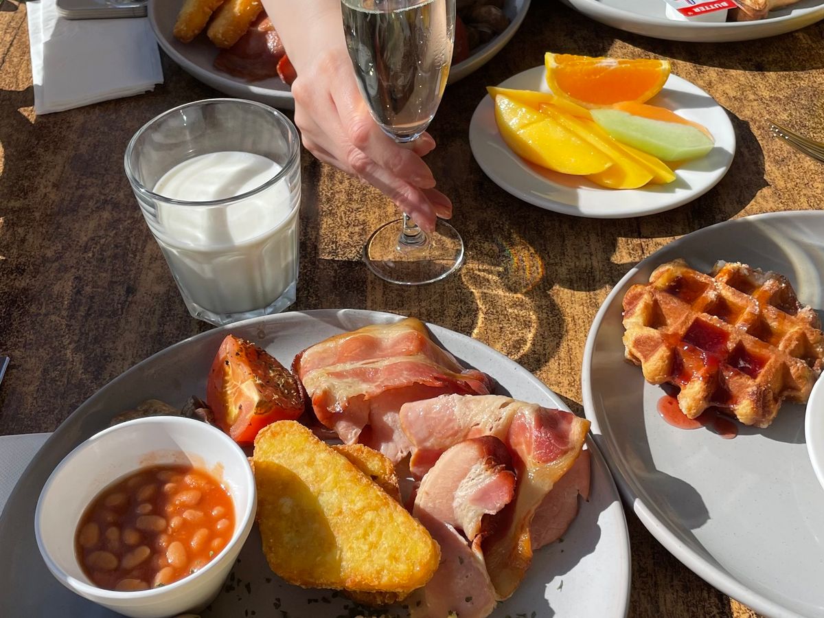 朝食はハム、ウインナー、ポテト、ビーンズなどで、ワインの試飲ができました。誕生日が近いことを伝えると、ケーキを用意してくださりました。ワイナリーの隣にはアルパカがいて散歩を一緒にするという体験もできました。
