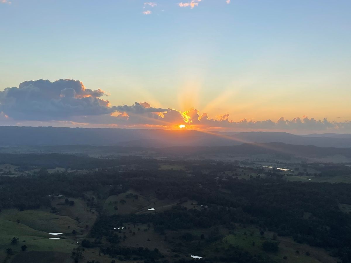 離陸して数分で素晴らしい日の出を拝みます。早朝のヒンターランド、澄んだ空気。本当に参加してよかったと感じた瞬間でした。