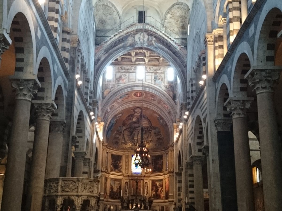 私は、礼拝堂・大聖堂内部に入りました。チケット売り場はわかりやすいです。カウンターでどこの場所に入りたいのか(斜塔・大聖堂・礼拝堂・墓所など)係員に言って、チケット購入します。大聖堂は無料ですが、チケットが必要です。礼拝堂はフィレンツェのサンタ・マリア・デル・フィオーレ大聖堂礼拝堂と違い、シックな装い。時間がある方は、入って左にある2Fに向かう階段で、ぜひ上階に。