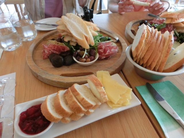 お昼のワイナリーでの食事はそれほどおいしいものではありませんが,ワインが好きな方なら,たくさん試飲できます。肉が苦手な人は,パスタのソースをトマトに,ハムとサラミをオムレツにそれぞれ変更してもらえます。
