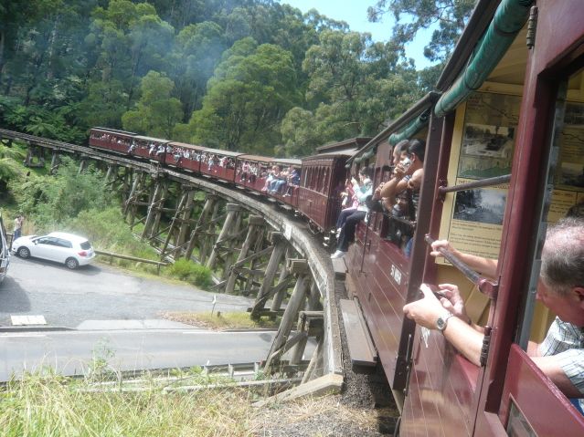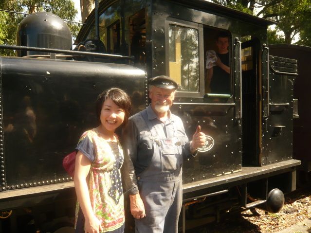ホテルでピックアップしてもらって、上田さんにいろいろとメルボルンのことを教えてもらいながらダンデノン州国立公園へ・・・機関車に乗る前に鳥に餌をあげました!と言ってもただばら撒くだけじゃなくて、腕に乗せて餌やりをすることができました。手のひらをくちばしでつつかれたけど、全然痛くなくてすごくかわいかったです!その後蒸気機関車へ・・。1駅だけでしたが距離がけっこう長くて、森林の空気を思いっきり味わうことができてとっても気持ち良かったです!窓枠に座って外に足を投げ出して、キレイな空気と蒸気機関車の走る音を聞くのはとってもいい経験になりました!