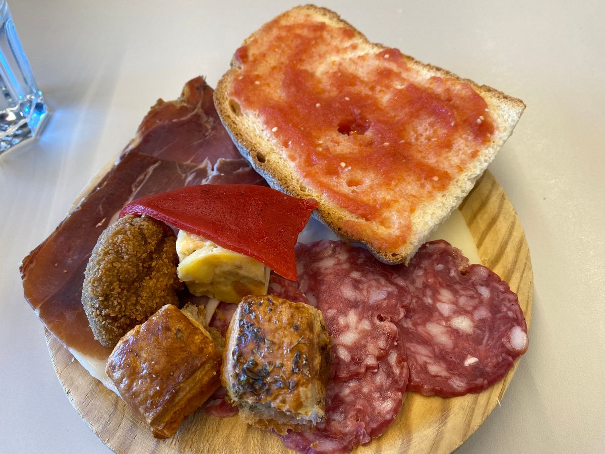 バルセロナからバスで小一時間で行けるモンセラット。大型バスでコースランチ、タパスランチ混在で向かいます。ただ、ガイドさんが違うので、自分のガイドさんの顔をしっかり覚えておきましょう。登山鉄道の駅でバスを降りて、鉄道で山を登ります。駅を降りたら、ガイドさんの説明後、自由行動です。私たちは20分ほどのハイキングコースを登り、景色を楽しみました。その後、教会の中を見て、再びバスに乗ります。30分くらいでワイナリーに到着。ワイナリーの畑の端でガイドさんがワイン作りの説明をしてくれます。(季節的になのか、畑には何もありません‥)15時頃にタパスランチです。3種のワインと共にいただく、ハムやチーズが美味しかったです。夜にパエリアを食べる予定でしたので、これくらいの量でちょうど良かったです。