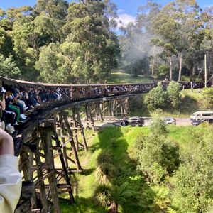 朝、8時10分にピックアップ出発して9時に蒸気機関車の駅へ到着。乗車する汽車は10時発の為、1時間ほど写真を撮ったりコーヒーを飲んだりして過ごしました。車内は座席もありますが、ほぼ全員窓枠に腰かけて足を外に出して乗車。とても良いお天気で気持ちよかったです。30分ほど乗車し、その後は小さな街を40分ほど散策。あまり日本の人向けのお土産はなかったので、ここは無くても良かったかもです。その後、ランチに向かいましたが年末年始の為、急遽、PIE IN THE SKYがお休みということで、イタリアンレストランでのランチとなりました。こちらも6~7種類のメニューから選択できてどのメニューも美味しかったです。その後はゆったり2か所のワイナリー巡り。特にドメインシャンドンは大混雑でしたが、製法なども丁寧にガイドの上田さんが翻訳して教えていただきよく理解ができました。今回は4人のツアーであったこともあり、車もゆったりした高級車で車内でWIFIも使えて快適でした。上田さんはメルボルン在住30年ということで色々なお話も伺えてとても穏やかな素敵な紳士でした。車内に主人が眼鏡を忘れてしまったのですが、丁寧に対応頂き、お忙しい中、翌朝ホテルに届けていただき感謝・感謝です。次にメルボルンのいく機会があれば、上田さんの別のツアーにも参加したいです。楽しい1日をありがとうございました