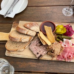 ワインがあり、メインディッシュとなるベーコン、ソーセージ、マッシュなどはスタッフが用意し、パンやデザート、飲み物はビュッフェ形式です。