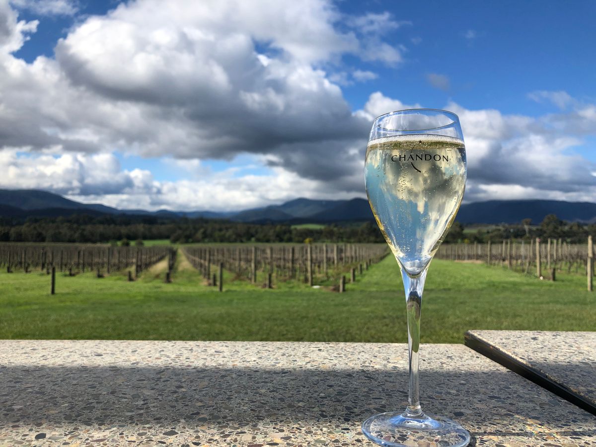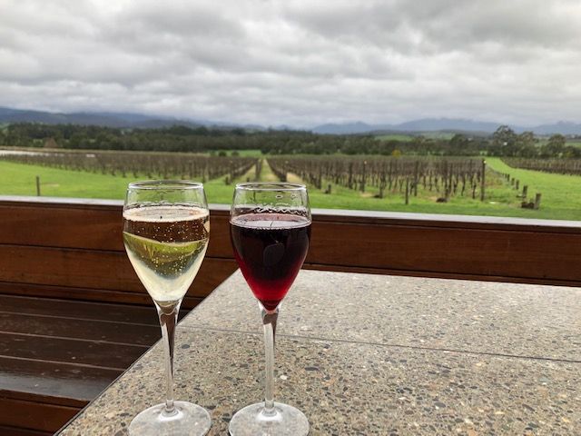 ワイナリーツアーランチは、4軒回りましたが、2軒目に朝食をとったワイナリーに戻ったのでちょっと苦笑い。熱気球とワイナリーツアーは別の会社だったようです。ランチはバス内で事前に注文を取ってくれます。ドメイン・シャンドンでは4つのシャンパンから好きな1杯を飲めました。チョコレートとチーズを持参したのでブドウ畑を眺めながら楽しく過ごしました。(もちろんワイナリーで食べ物を注文することもできます。)
