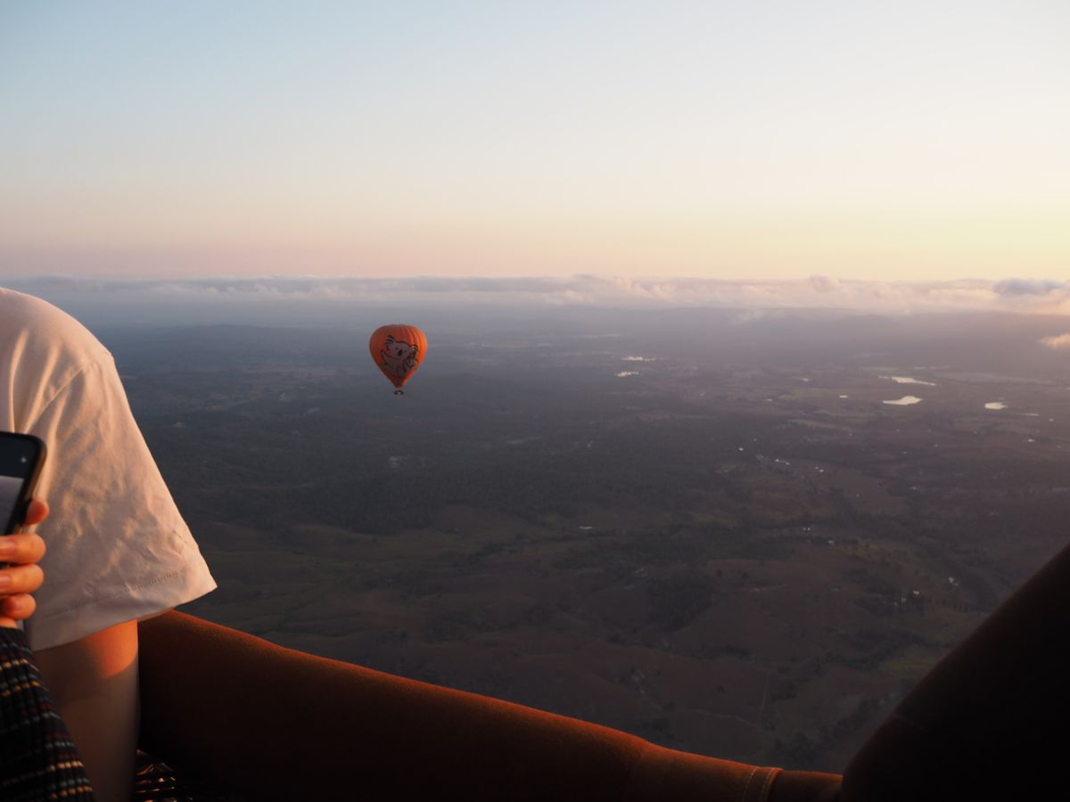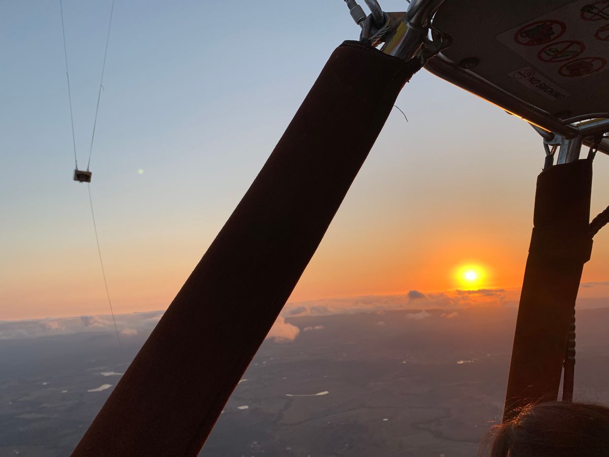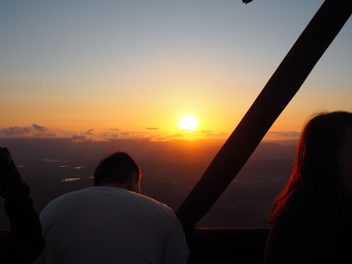 天気は良かったのですが、水平線に雲がかかっていて海から出る日のでは見れませんでしたが。気球に乗って薄暗い中からだんだん明るくなって、真下から見渡す限りに広大な牧場や畑、湖や山が広がり。自分が乗っている気球の影が見えるのも感動しました。