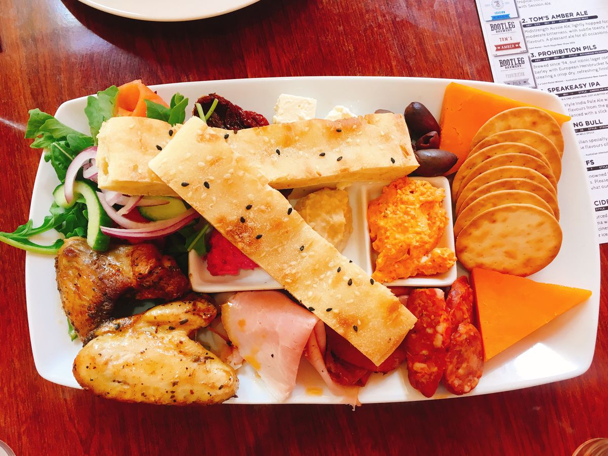 その後に、ハムチーズ、チキンなどの盛り合わせを二人で一皿。