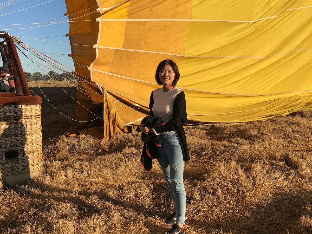 話に聞いていた通りに広い大地をスーッと進んで行く感覚がとても気持ち良かったです。また、気球の操縦士の方が、上昇したり下降したり工夫して運転してくれました。そして、英語で話されますがとってもフレンドリーです。出発地とは違う場所に到着し、みんなで気球を片付けました。これも普通はできない経験でとても楽しかったです。ワイナリーの食事もとても美味しかったですよ。ただ、私は8月に参加したのですがとても寒かったです。参加される方は是非暖かい服装で行ってください。
