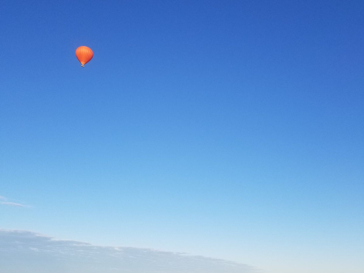 朝日が昇りきった後も青空に他の気球が上がっている様子はとてもきれいでした。