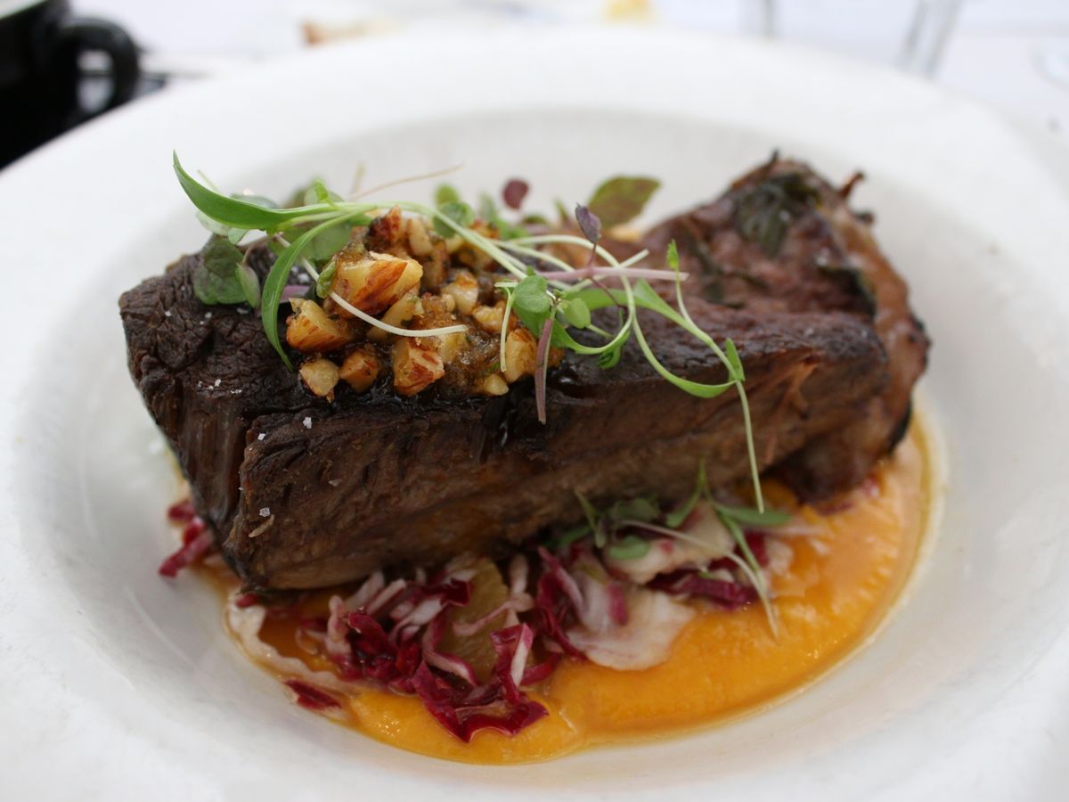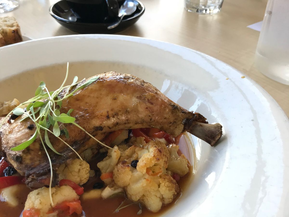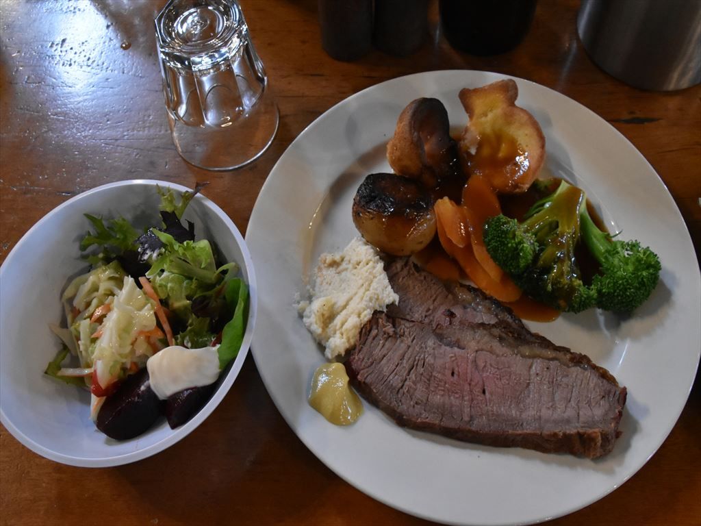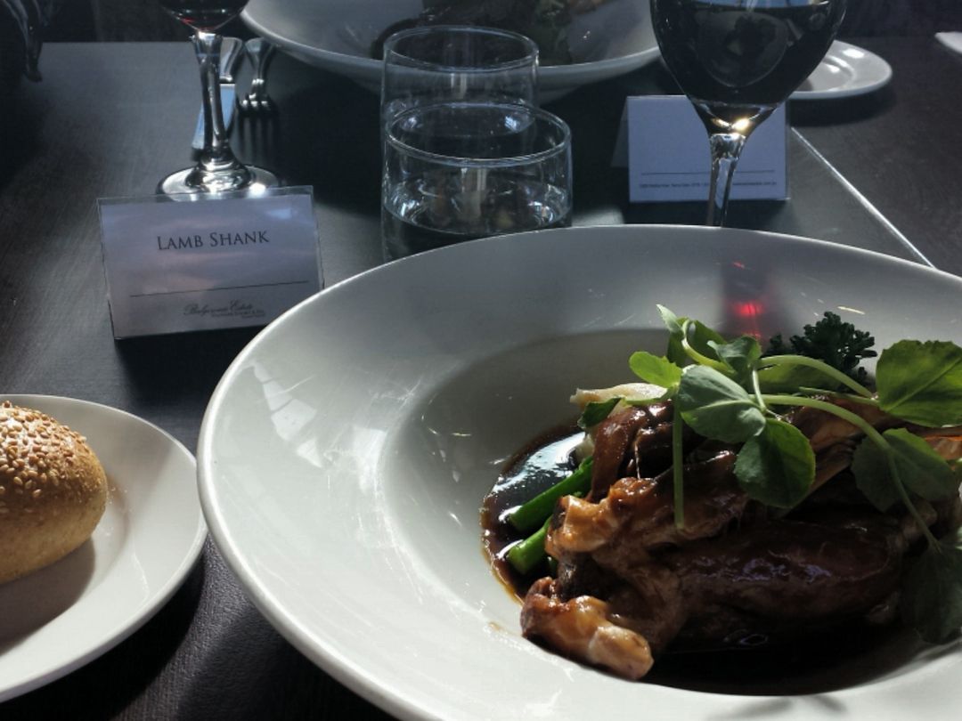 メニューはフィッシュアンドチップス・チキン・ラム肉・リゾットの4種類とワイン1杯を選べます。私がチョイスしたフォンドボーで煮込んだラム肉は骨からほろっとくずれるくらい柔らかく、おいしくて完食です。どの料理もかなりボリュームがあり、盛り付けも洗練されて美味しそうです。食事中は社交的な欧米人が世間話で盛り上がる中、大人しく英語も不十分な私に、隣席オージーが、英語はしゃべれるか、何日滞在するのか、どこを観光したのか、など気にかけてくれました。