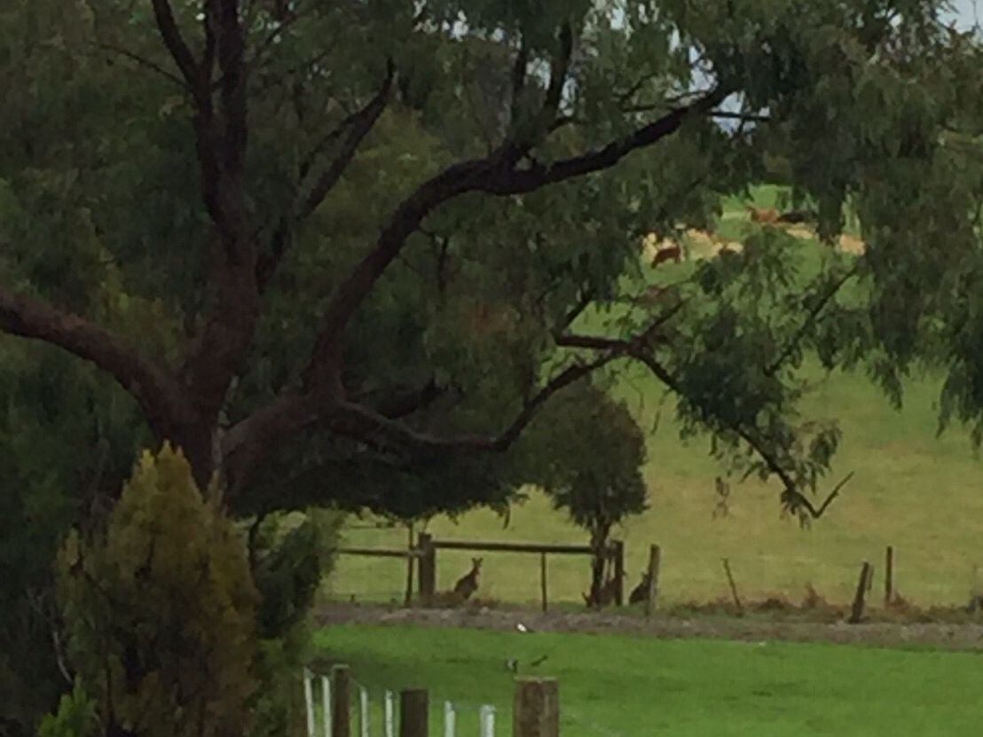 コールドストリーム・ヒルズに向かう道中、カンガルー4匹がピョンピョンと道路を横断。Mr.ジョンは車を止めて撮影する時間を取ってくれました。