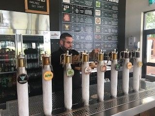 ホテルで待ち合わせ、時間通りにお迎えに来てくれました。私達を含め5人(日本人)のツアーです。ワゴン車を走らせ約2時間でハンターバレーに到着です。途中高速道路入る前に、おトイレ休憩があります。シドニーの街並みからすると、かなり田舎にきたなと言う感じのハンターバレーです。一軒目で4種類のワインテイストします、気に入ったのがあればその場でお買い上げ出来ますし、買わなくでも全然大丈夫です。三件目に自由昼食となります。この時15$で6種類のビールをおちょこサイズのグラスで飲み比べが出来ます、なおかつその中でお気に入りのビールを一杯だけ350㏄グラスでついでくれます、おちょこグラス飲み終わったグラスを入れてくれた所に返しに行って、お気に入りのビールをを指差しすればいれてくれます。(その時入れてるときに順番を忘れずに覚えておいてください!)