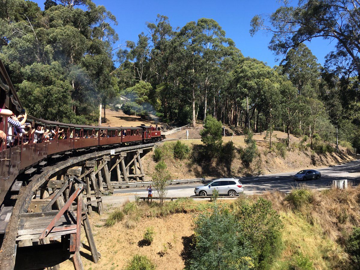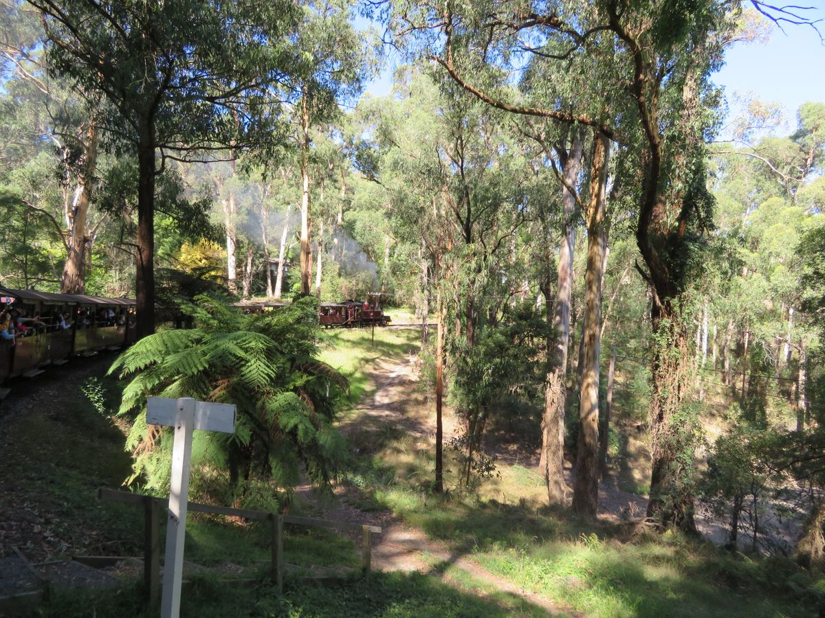 牛や羊が放牧されている広々とした景色を眺めながらのドライブを楽しんでいるとチョコレートファクトリーに到着。お土産になりそうなチョコレートがたくさんありました。その後、ファーガソンワイナリーとスパークリングワインで有名なドメインシャドンシャンパンファクトリーの2箇所でワインの試飲を堪能しました。ガイドさんがソムリエの資格を持っている方だったので、いろいろなことを教えてくれました(ワインの飲みすぎに注意!)。ワイン以外にもオーストラリアの生活事情のお話など楽しかったです。昼食のローストビーフは美味しかったです。サラダはビュッフェでローストビーフもお替り自由でした(ワインも)。可愛い看板犬もいましたよ。蒸気機関車は約30分の乗車です。名物の足を出すスタイルは事故があったため禁止になってましたが、森林の中を爽やかな風を感じながらのんびりとした走行なので癒されました。