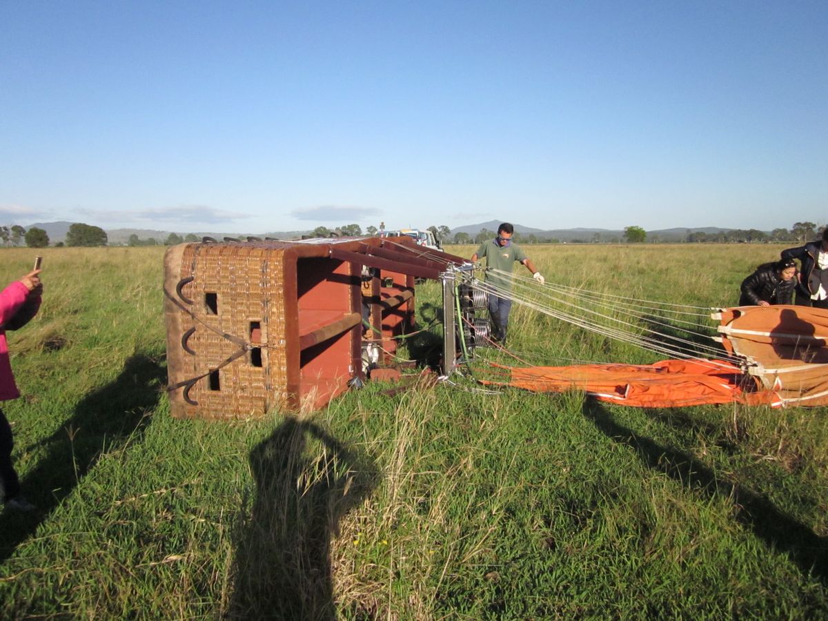 その時の状況によりスムーズに着陸する場合もあれば、衝撃を伴いながら着陸し、最後にバスケットが横になることがございます。