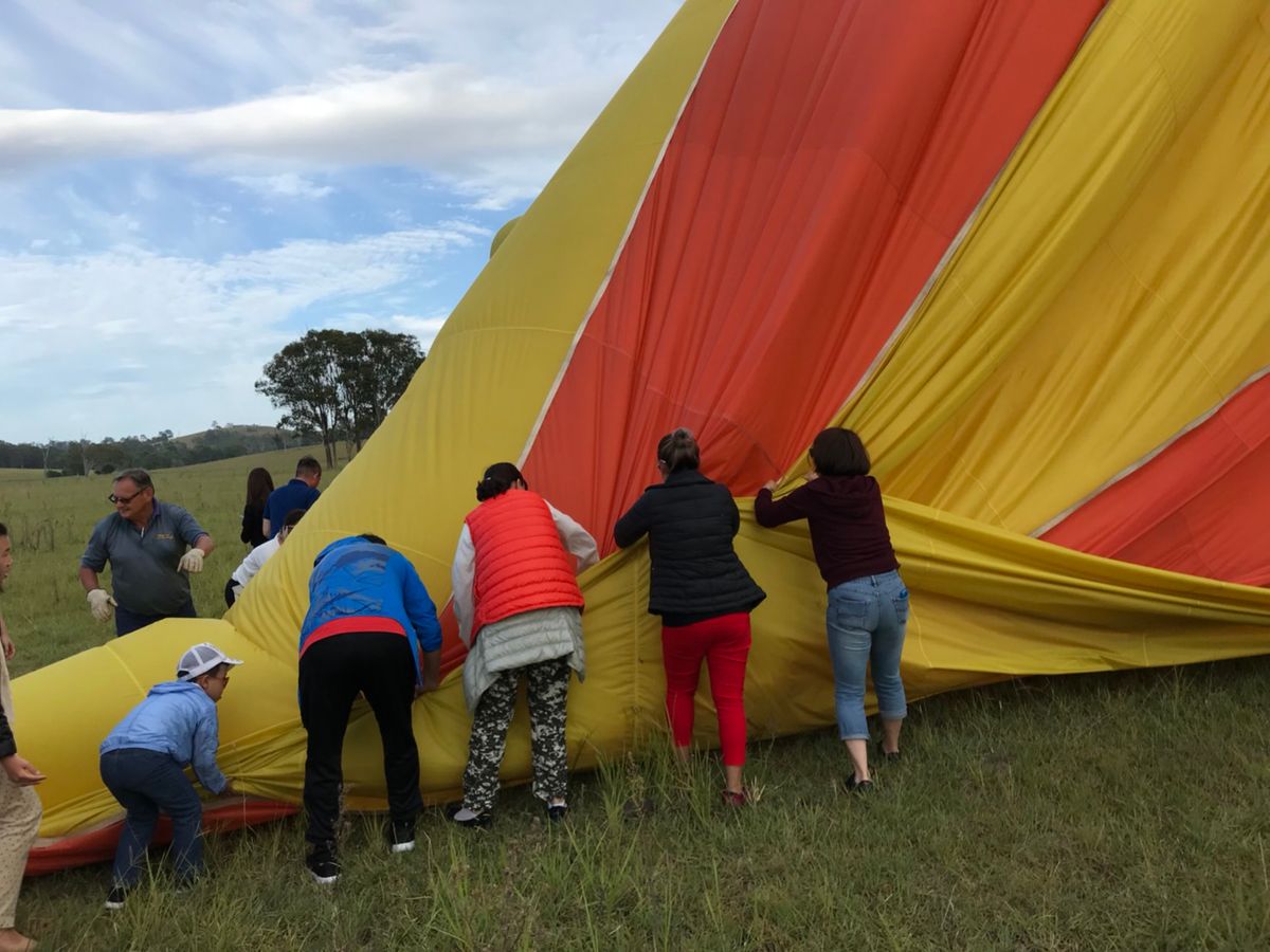 ライディングポーズをとって着陸、皆で気球をたたみます。これがなかなかの重労働、スタッフさんも汗だく!でも楽しい作業でした(^^♪