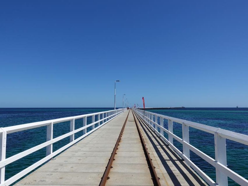 マーガレットリバーの前に訪れた世界最長の木造桟橋バッセルトン桟橋が圧巻でした。本当に水平線まで桟橋が伸びており、長さに圧倒されました。