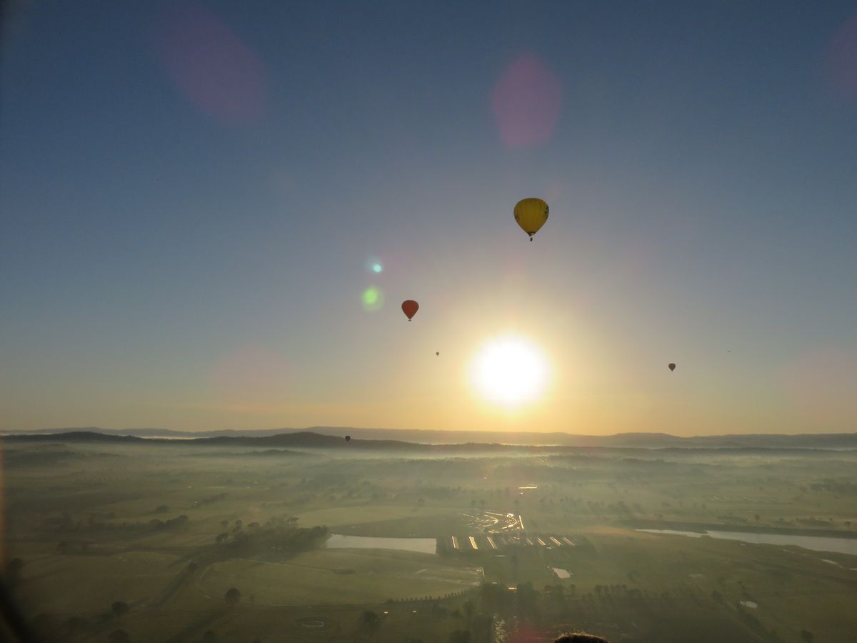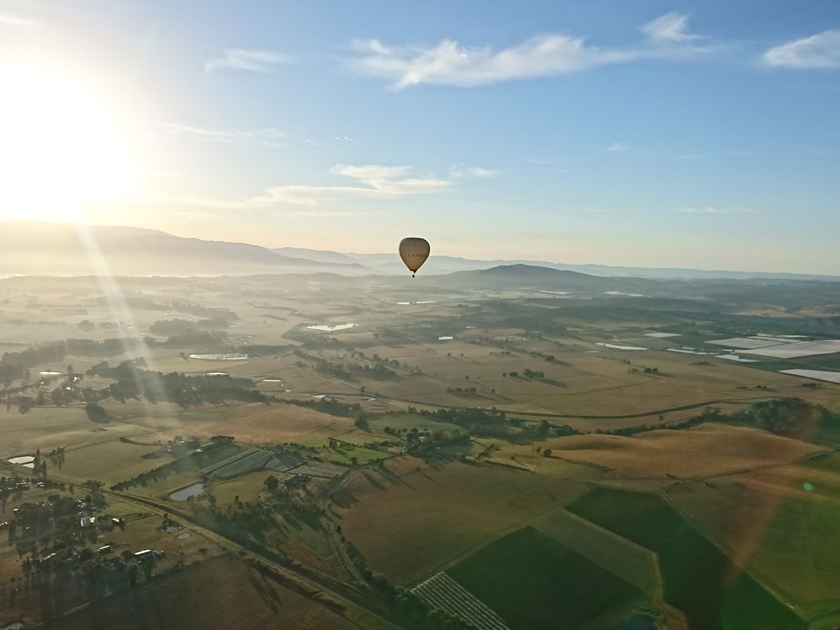 友人と2人で人生はじめての熱気球体験でした。集合はam3:40にホテルでピックアップをしてもらい暗いうちに出発しました。途中のトイレ休憩後ひたすら山道を走り、明るくなった頃に出発場所へ到着しました。すでに熱気球がいくつか膨らんでいて、待つことなく乗り込みました。着陸の際に両手を使うので、持ち込む荷物は首に下げられるもので、それ以外は箱にいれて預かってもらいました。カメラ等も首に下げられるようにしておくととても便利でした。気球は揺れたりするのかなぁと思っていましたがそんなことはなくとても安定した飛行で怖く感じることは一切ありませんでした。お天気も良く日の出もよく見えました!高くまで上がると遠くのほうまで見渡すことができ、オーストラリアの広大な景色を楽しむことができます。とてもいい経験ができました。もし気球に興味があるのであればぜひ体験してみてほしいと思います。着陸後はみんなで気球をたたみ、朝食会場へ向かいました。朝食もいい景色のなかとても美味しかったです。ドライバーの方もとても親切で安心して楽しむことができました。ありがとうございました。オーストラリアに行く友人には必ずおススメしたいと思います!