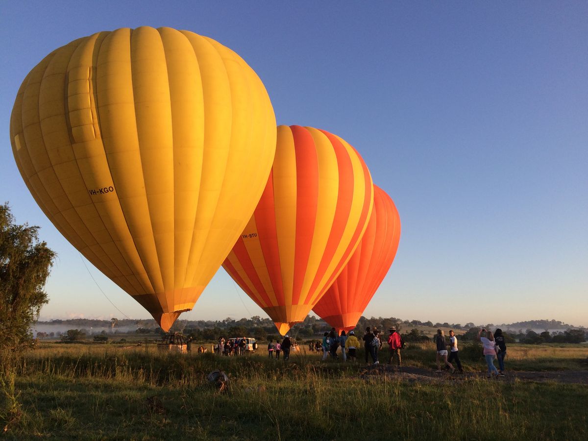 当日は天気も良く風もなく穏やかで、早朝の済んだ青空に色鮮やかなバルーンでお出迎え朝陽がとても眩しくオーストラリアの広大さに圧巻されました!ベテラン添乗員さんがカンガルーがいるよ〜!あっちはブリスベンだよ!そして、あっちは海の方だよ!など、丁寧に説明してくれて、気球から美しい景色が一望できました!