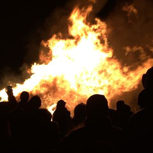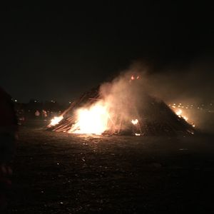 英語の喋れない私は皆さんが解散後、ガイドさんを捕まえてマンツーマンで説明を受けました(ガイドさんありがとう)私が理解した内容は、バスの番号、このバスに2時間後集合。それまで、かがり火とトイレとコーヒー(建物あり)。単語をひろってそれだけ分かりましたが、2時間もどうすんの?!というのが私のその時の気持ちでした。それからかがり火を見に行き、前の方で見れました。やっぱお焚き火ねぇ、うーんもう引き返す?でも周りの人誰も動かないねぇって思ってたら、かがり火がどんどん変化、すごい!!炎が生きてます!!怖くてどんどん後退しました。その炎が落ち着いてきた頃カウントダウンが聴こえて、何、何?って思ってとら、炎と反対方向から花火が上がりました!これも良かったです。