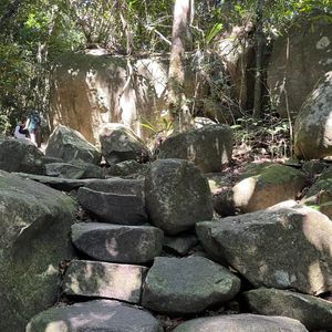 ヌーディービーチまではこんな感じの岩場の階段を上り下りするのでビーサンは危ないかも。