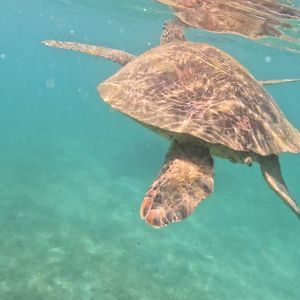 シュノーケリングツアー参加しました。浅瀬より透明度が高く、色々な魚たちに会えました。ウミガメと泳ぐこともできました。