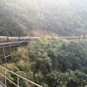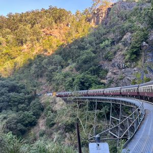 スカイレールは、ゴンドラに乗り慣れているため、特に感動はなかったけど、各途中駅のちょっとした散策も思っていた感じに良かったし、乾期だったから、バロン滝の勢いがないのも予想通りなので、そこは問題なし。乗り継ぎもほぼ待ちなく流ていて良かったです。係の方も感じ良かったです。極めつけは、川を泳いでいるカモノハシが見れたこと、これは本当にいい思い出になりました。残念だったのは列車です。詰め詰めに乗せたい側からしたら、座席は勝手に運営側が決めるとなるのでしょうけど、運で窓際かどうか決まるから、4人家族で窓際はたった1人でした。ただの交通手段として乗るなら、まだいいけど、景色とかもうりにしてるなら、購入の時に座席は選べるべきだなと思う。すごく不公平に感じて、残念でした。
