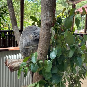 とても小さな動物園で、ワニ、カンガルー、ヘビ等いましたが、10分位で見終わりました。コアラはほぼお昼寝。当日はタッチのみの撮影で、お尻あたりを触って良いとの事で、撮って頂いた写真はコアラは下を向いて半分寝ていて、私達だけが笑顔で残念な写真。携帯でも撮ってくれましたが、同じ写り。