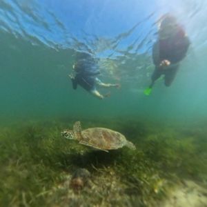 桟橋の下あたりをシュノーケリングで探索していると、本当にウミガメに出会えました!