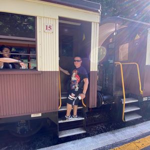 まず、キュランダ鉄道、指定席で、ガイドさんの日本語説明もあり、ゆったり楽しめました。キュランダ村に着いたら、ガイドさんと別れて自由行動。ぶらぶら散策、ブーメランなどのお土産を選んだり、昼食を選んだり。家族で各々好きな店で好きなものを選び、ガイドさんに列車内でおすすめされたカンガルー肉のミートパイやハンバーガーを食べました。