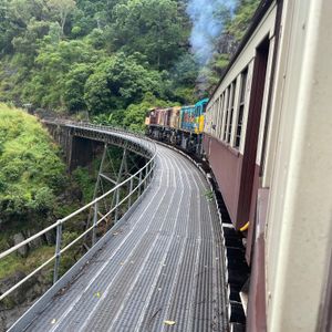 早朝の便で到着日に体験。空港に6時迄にケアンズ到着し、すぐホテルへ。ホテルの部屋がすぐに入れたので、身支度して9時から体験ツアーへ参加しました。キュランダ鉄道は連日の雨による洪水の影響で気付かないスカイレールに変更になったけど、それが逆に雨季の大自然のバロン滝+虹が見れて良かったです。あいにくの雨で星空は見られなかったけど、自然の蛍やポッサムを見れたり、子どもたちは特にロックワラビーに餌をあげられたのが印象的だったようで、その後はぬいぐるみを購入していました。長丁場で体力が心配でしたが、バス移動の合間に休憩できたりで回復し、ツアー後もナイトマーケットで降ろしていただいて楽しみました。