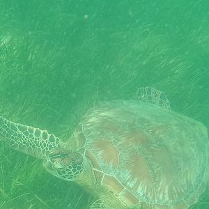 シュノーケリングorグラスボトムボートかを選ぶプランで、私は前者を、家族は後者を選択しました。シュノーケリングは、ゴーグルとフィンは借りれますが、スーツは追加料金です。私は借りませんでした。とりあえずウミガメだけを探したくて潜ると、運良く食事中のウミガメを発見!かなり浅いところで見られたのはラッキーでした。珊瑚礁はここではまばらでしか見られないらしく、そこは残念でした。これなら沖縄の海の方が、ウミガメも珊瑚も見れて満足度が高いように思いました。グラスボトムボートに乗った家族の話では、魚や珊瑚が見れたものの、思ったより鮮明には見えなかったとのこと。やはり沖合に出て潜るか、上空から眺めるのがグレートバリアリーフの楽しみ方なのかもしれません。