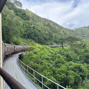 帰りは鉄道に乗ってケアンズに戻ります。途中バロンの滝駅で写真撮影タイムがありました。ビューポイントでは減速運転となるので写真撮影もバッチリできます。