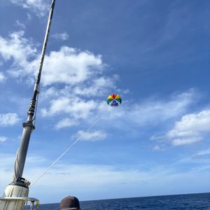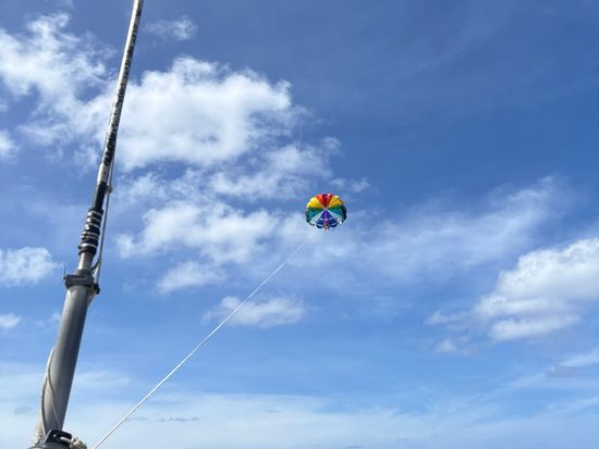 最初にパラセーリングするのに船にのせられ、沖に出て気づいたら空飛んでました。