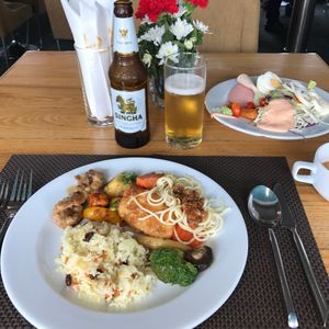 昼食はKrasae Cave Restaurantでビュッフェスタイル。ちょっと、早めに到着できたのか、ほぼ、空席。なので、全員(といっても、今回のツアー、二人組が4組の計8人だけ)、川沿いの席に座れないかガイドさんが店員さんに交渉してくれたけど、1卓(4人掛け)だけということなので、正直、川の風景もそれほどだったので、川沿いで無いテーブルで昼食。