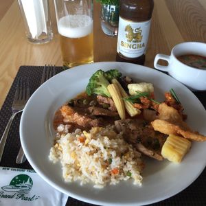クウェー川沿いのブッフェ式レストランでした。オープンスペースのレストランなので景色はいいですが、ハエが飛んでいるのが気になる人には厳しいかも。食事の種類は少しでしたが、ピラフ、パン、パスタ、スープ、カレー、唐揚げなどで、辛いものが苦手な人でも食べやすいメニューでした。ドリンクは別料金ですが、私たちは持参した水を飲んでいたので買いませんでした。
