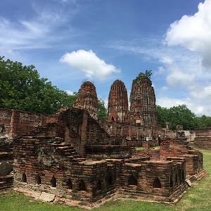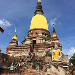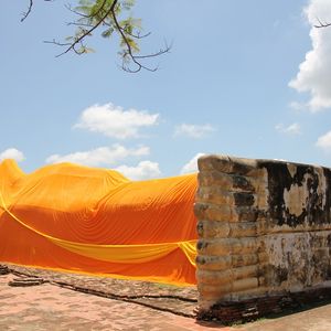 ガイドさんの説明と合わせ、ベルサイユ様式の迎賓館、中国から贈られた王家の御寝所がある建物などを見学するうち、タイ王家の存在の大きさや歴史を肌で感じることができました、それを受けてのアユタヤ遺跡郡、まさに 強者どもが夢の跡 でしたが、またしてもガイドさんが、戦争の経緯など説明してくだり、一層心に迫るものがありました。雨季というのに晴れわたる青空にたつ崩れ落ちた建物は、言葉ではつくせぬ圧倒的な存在感でした。