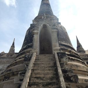 1時間ほど走ると、カンチャナブリの街に到着し、最初の観光のお寺に行きました。当初心配していた雨も上がり曇り空で蒸し暑い中お寺を見学しました。最初の階段に関してはたいしたことはありませんでしたが、それよりも洞窟の中がとても狭くその中を少しですが登るのが大変でした。高齢者の方はきついと思います。