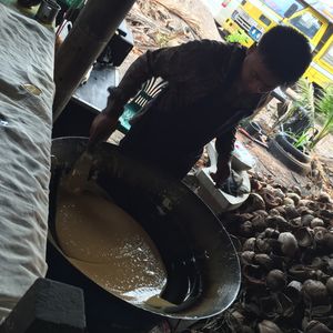 朝は自宅の最寄りのホテルでピックアップしてもらい、観光バスで現地まで移動しますが、途中ココナッツ砂糖などを作っているお土産スポットに立ち寄り、休憩です。