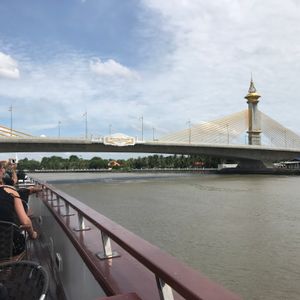 小銭(5バーツ)が基本みたいです。困った私達にガイドさんはとても親切にしてくださいました。ランチクルーズでは食事はあまり期待していませんでしたが、金額に見合うものだと思います。今回は高齢の母との短期旅行でしたので、あまり歩かずバンコクの街並みを感じることができたので、良かったです。