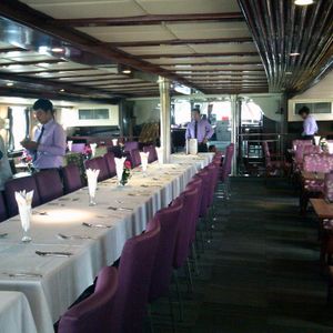 お料理の味とクルーズは良い方だと思いますが、生演奏と生歌、爆音で、途中真ん中にお料理があるんですがその周りを囲むように団体客がボーカルの歌に合わせて踊りだし、料理もとりにいかれませんでした。