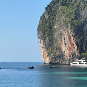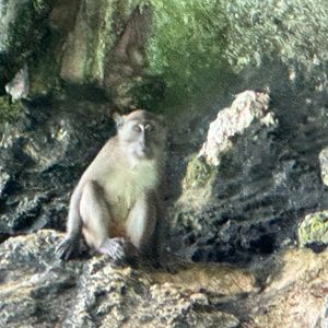 ピピ・ドン島のモンキービーチは、写真のように浜辺に近づくというより、崖の近くを船で寄る形で、この日はサルは1匹だけ確認できました。