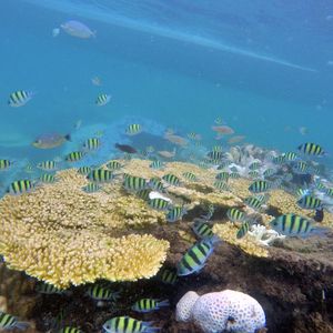 シュノーケリングでは、目の前に広がる珊瑚とたくさんの熱帯魚を見ることができ、大満足でした。