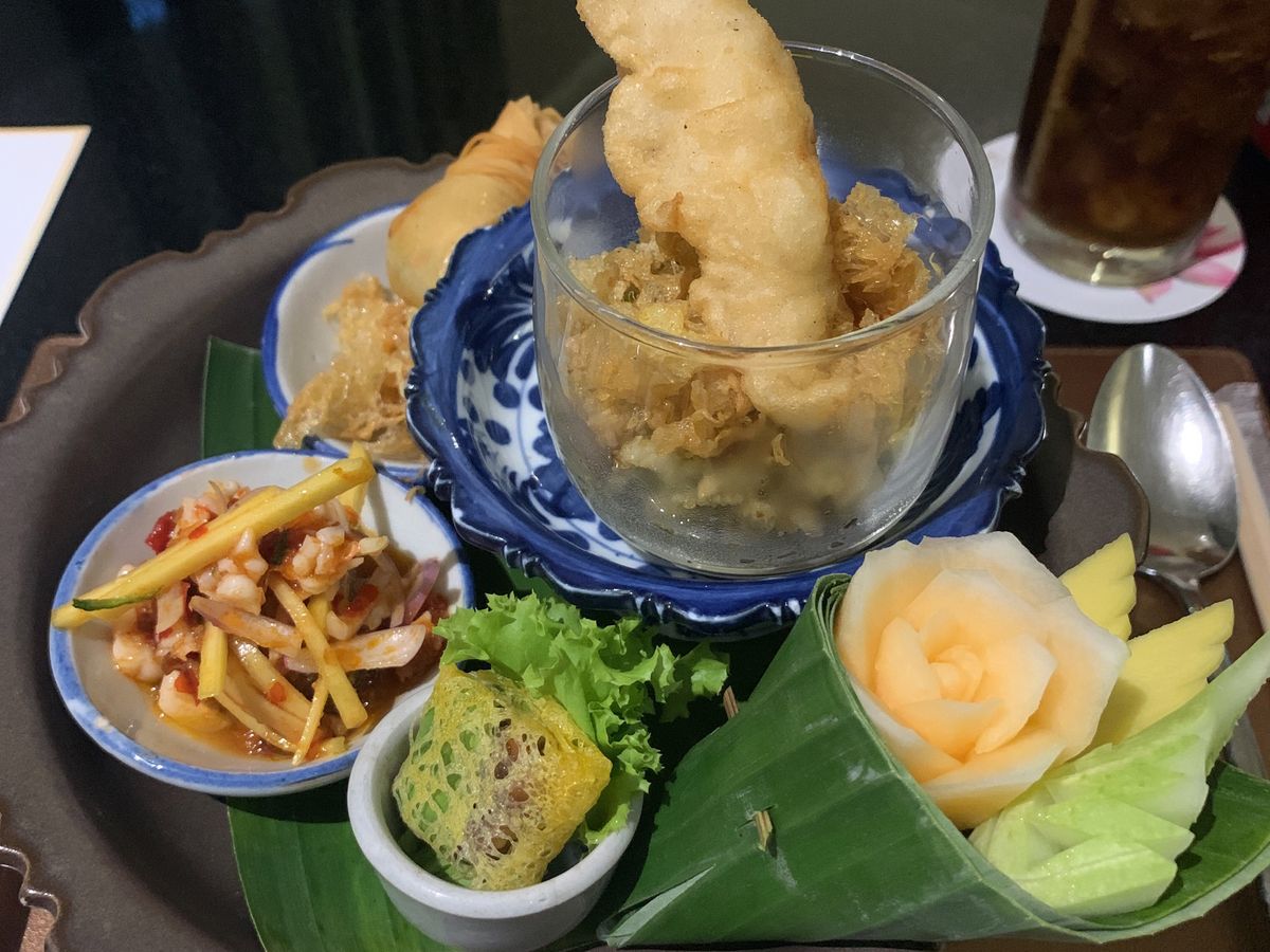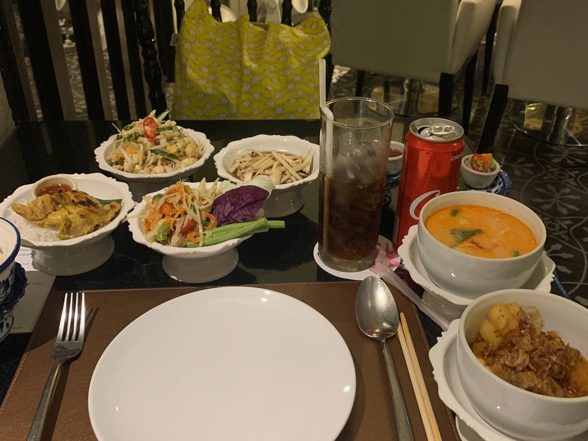 しかしながら、夕ご飯は不味いわけではないですが、量が多すぎるのと、夕ご飯の時間まで1時間以上の時間を潰すのが大変でした。少しまわってから、ホテルのロビーで待ってましたが、狭いロビーでちょっと待ち辛い…。また、ディープフライや他のフライものは油がダメなのかかなり脂っこく、ソムタムはゴボウみたいに硬いものがあって噛みきれず、デザートもフルーツ以外のココナツとバナナのは甘過ぎて…カレー、きのこ炒め、ご飯、鶏肉料理は口にあいまして美味しかったです。ちなみに、私以外全くお客がおらず…本当に人気店??ショッピングセンターのフードコートで好きなもの頼んだ方がよかったです。