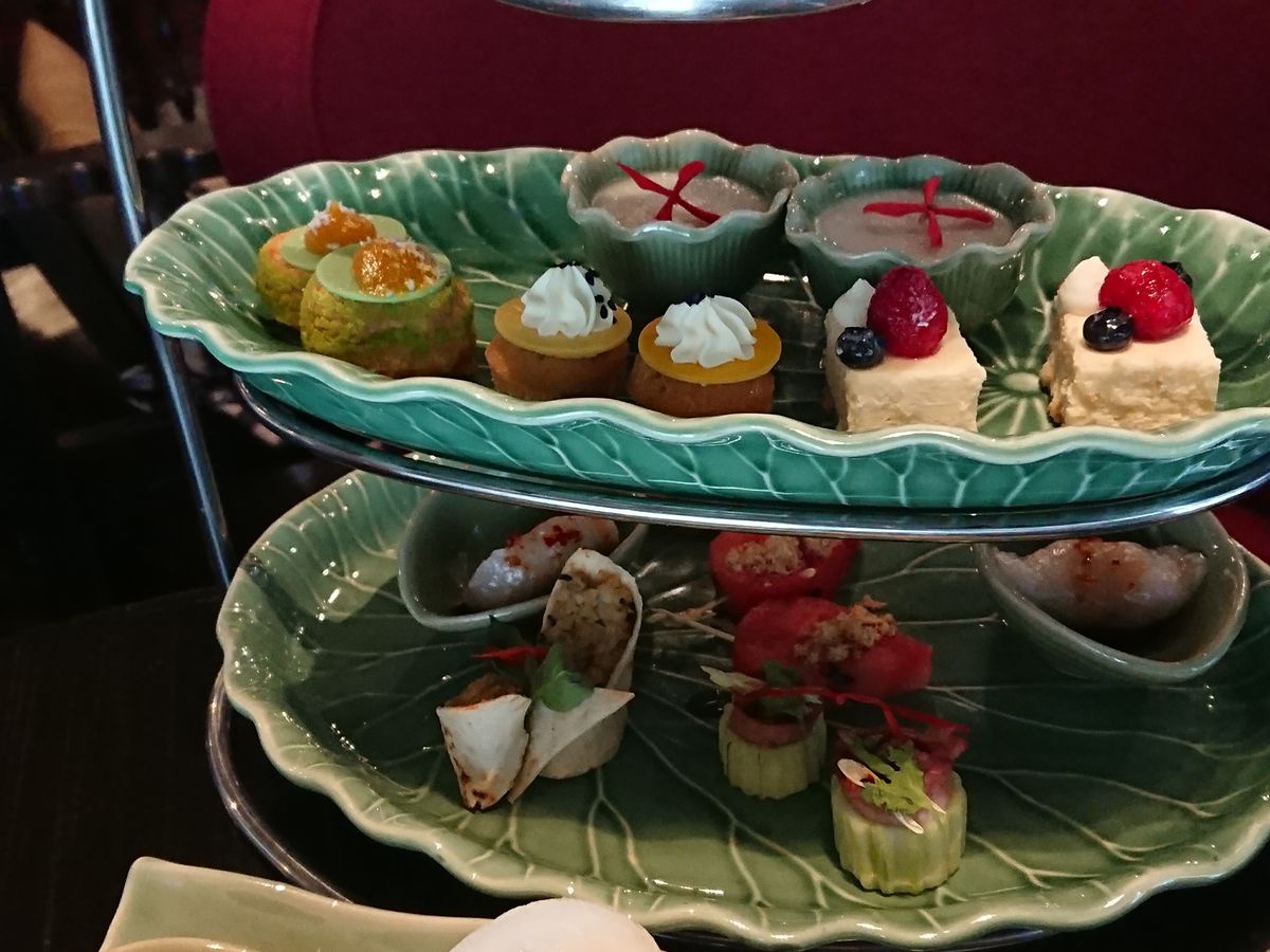 アフタヌーンティーの内容は飲茶、スコーン、マンゴーなどのスイーツがあり美味しかったです。