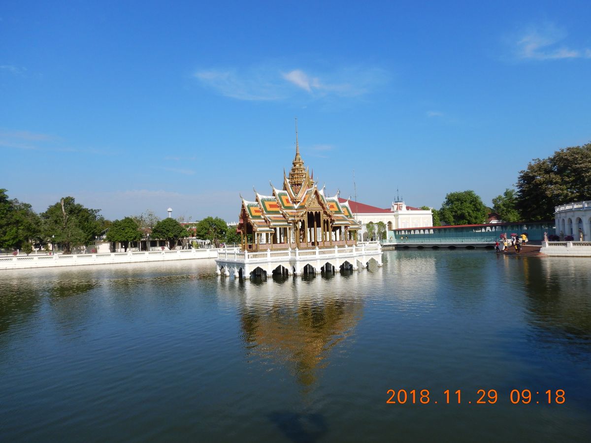 タイ風建築では、1876年、ラーマ4世によって建設された池の上に建つ離宮があって、大量の黄金が使われており、太陽の光に反射して輝いていました!!