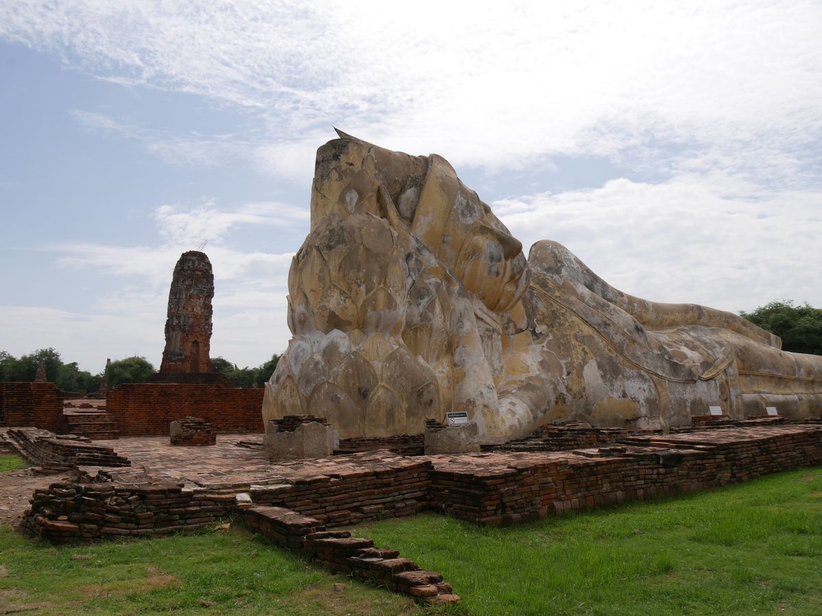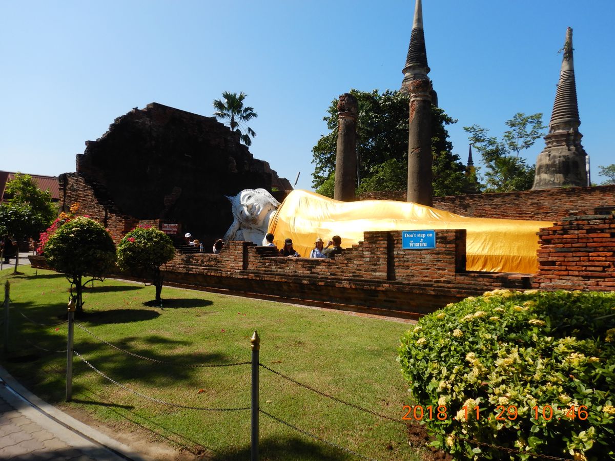 仏塔の東側に本堂が後に建立され、純金に覆われた立仏像が置かれていましたが、1767年のビルマ軍による第2次アユタヤ侵攻で寺院そして仏像はことごとく破壊されています!!