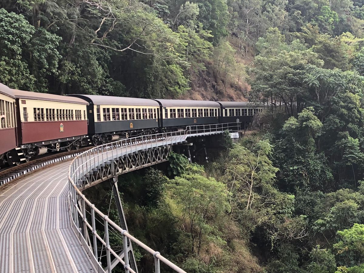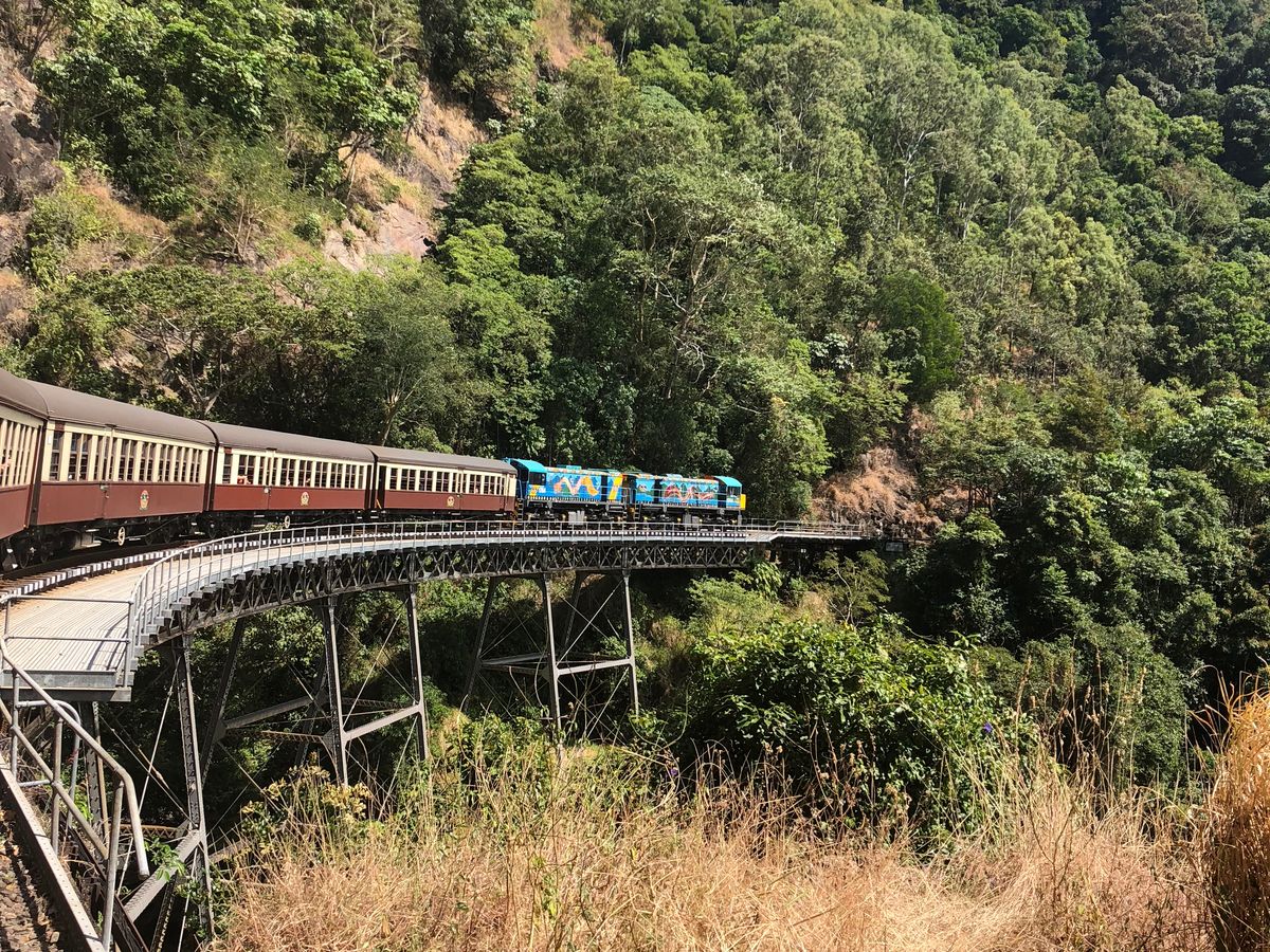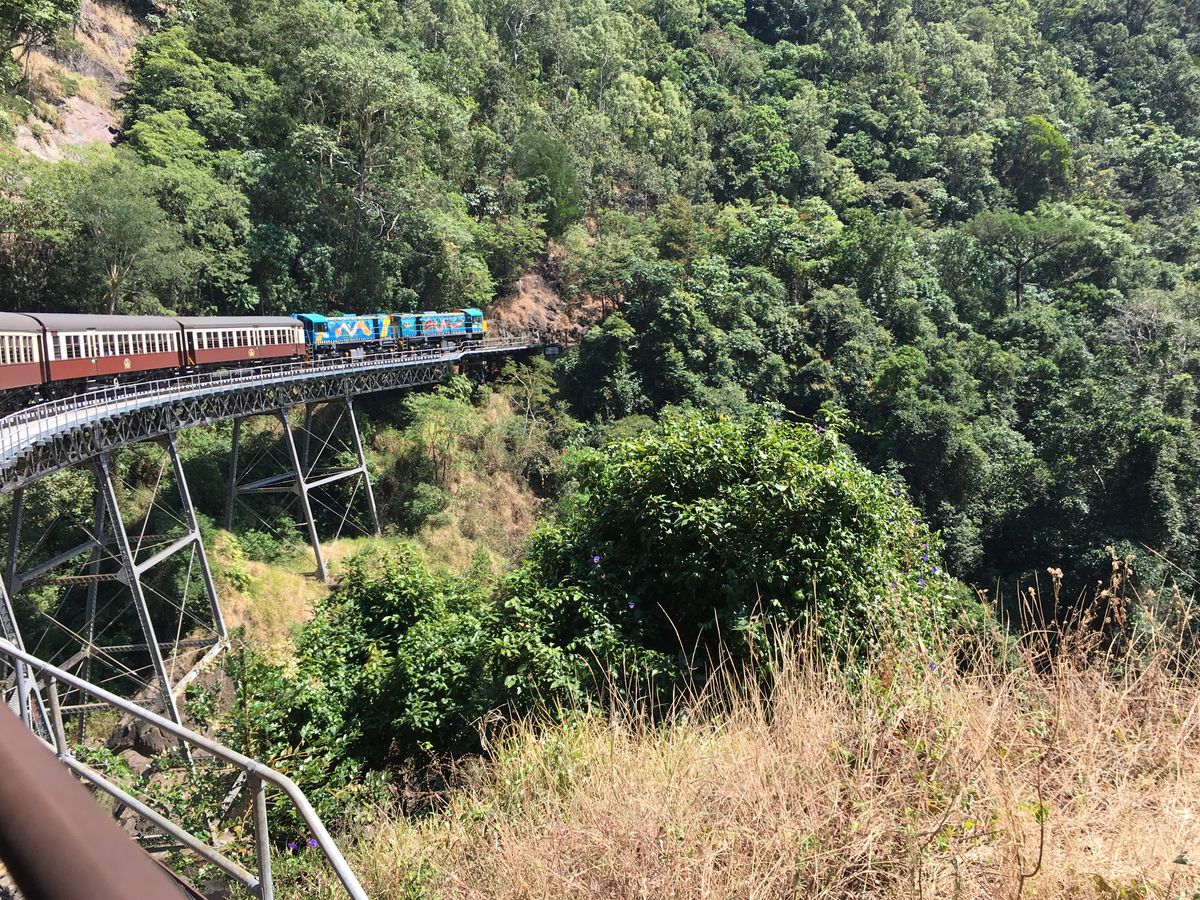 キュランダ への行きは鉄道、帰りはスカイレールでした! 鉄道も皆が平等に景色が見れるように席を交代してもらえるのが良かったです。