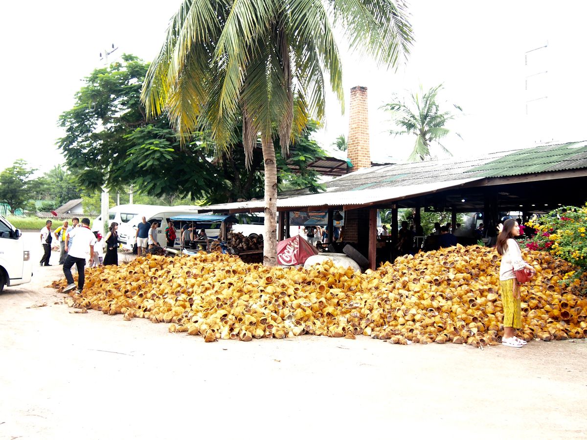 途中休憩のココナッツファームは他のツアーの利用者も多くて混雑していました。ガイドさんは出来立てのココナッツシュガーの試食を勧めてくれたり、ココナッツを削る実演などを交えて熱心に説明してくれました。