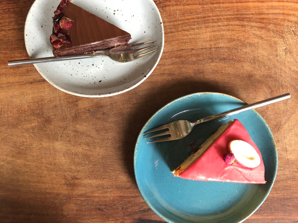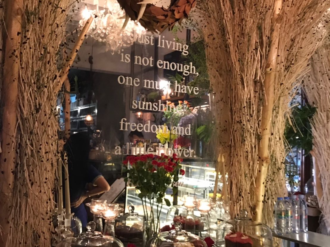 昼食のレストランの食事も美味しく、花市場にあるおしゃれな「カフェ」